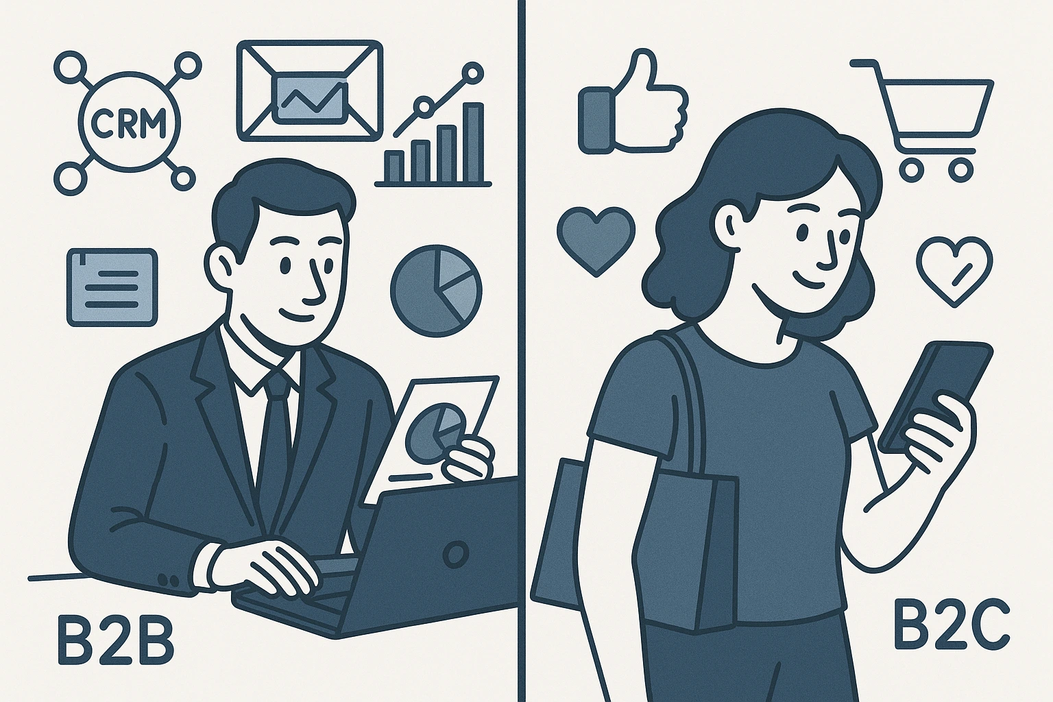 B2C: Focuses on volume, speed, and immediate ROI.